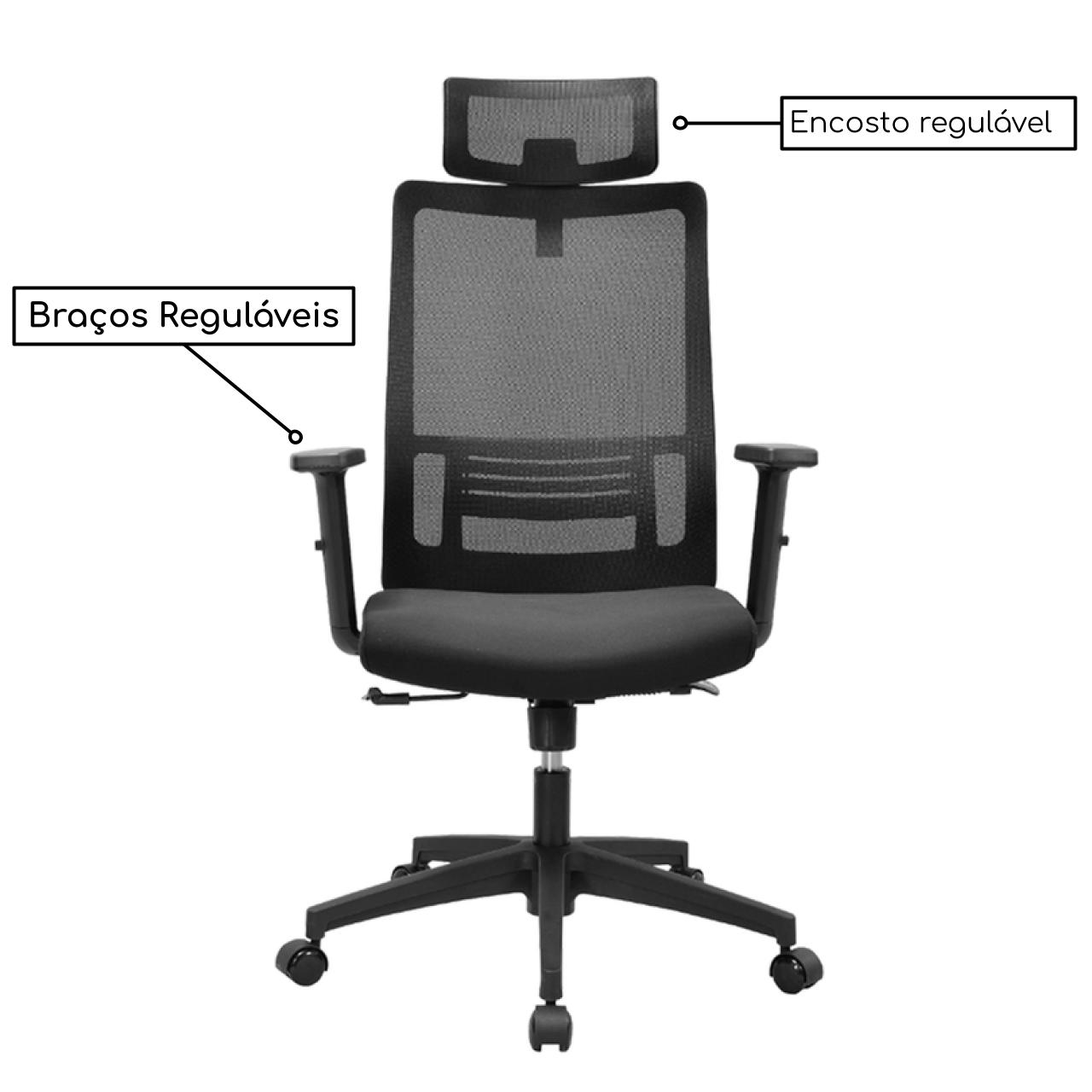 Cadeira para Escritório Presidente TELA VIENA – NR17 – Cor Preto – 30051