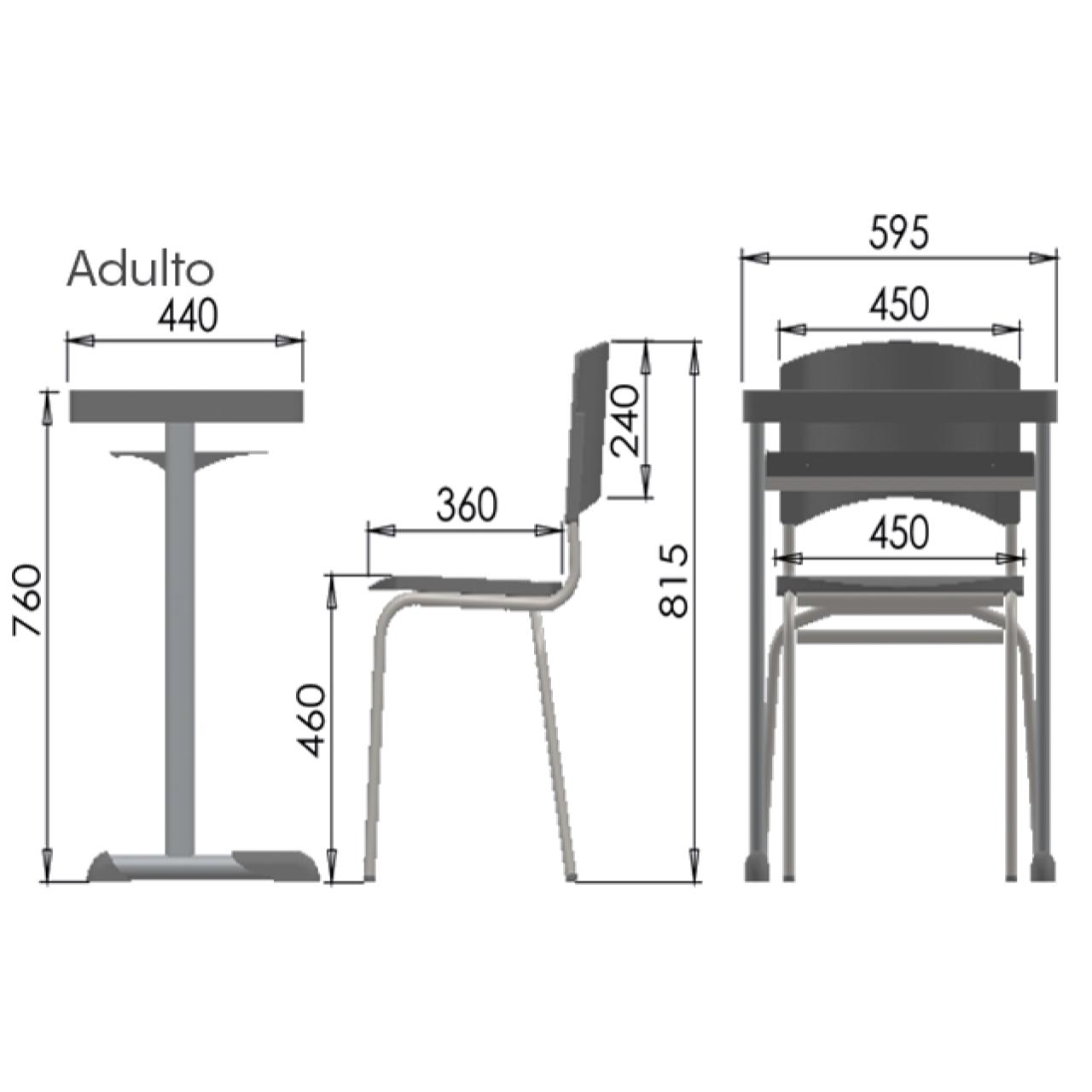 Kit Escolar Individual AZUL – (Mesa e Cadeira) – ADULTO – TAMPO PLÁSTICO – COR AZUL – REALPLAST – 54004