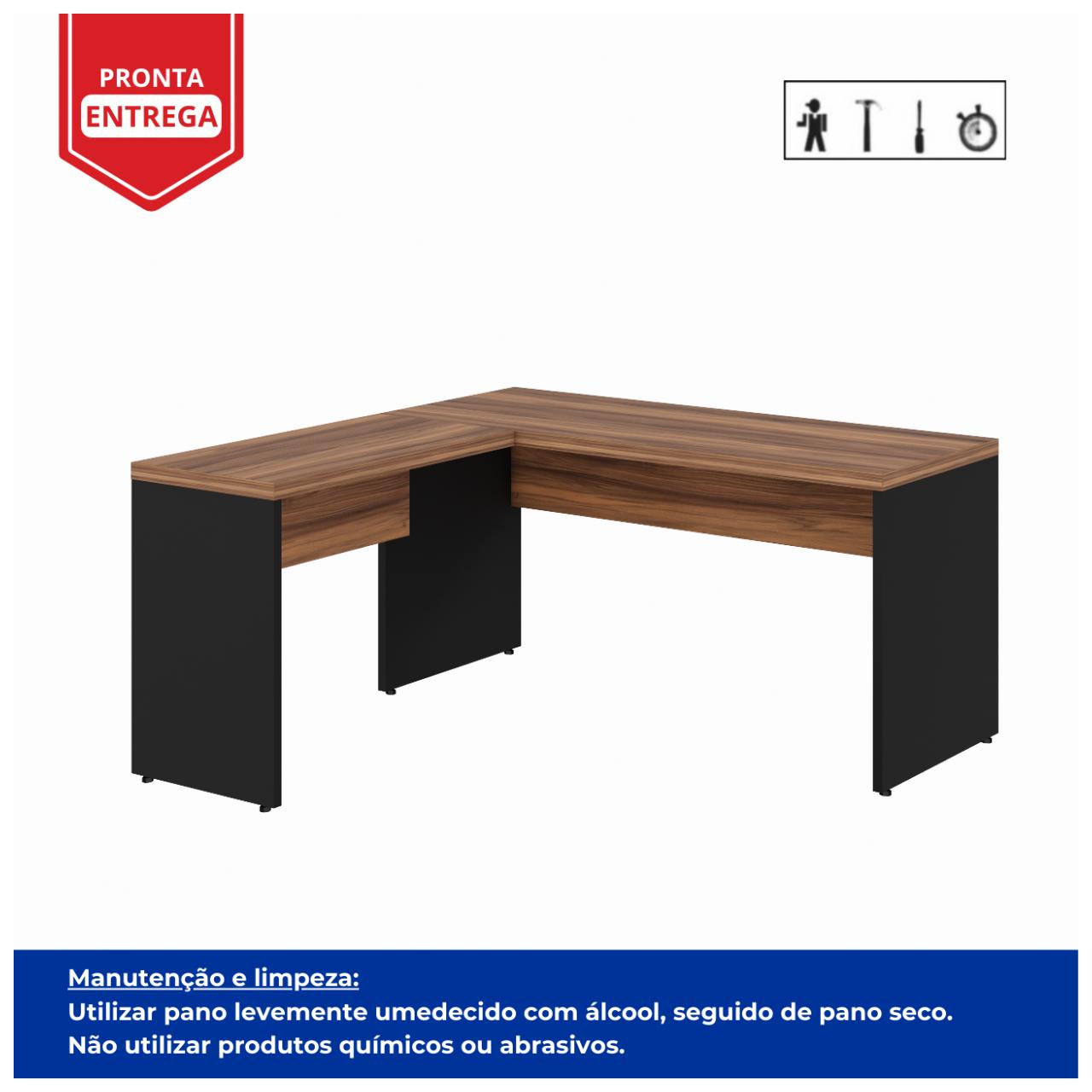 Mesa de Escritório em L (Mesa 1,50m + Mesa Auxiliar) - Sem Gavetas NOGAL SEVILHA/PRETO - 21476